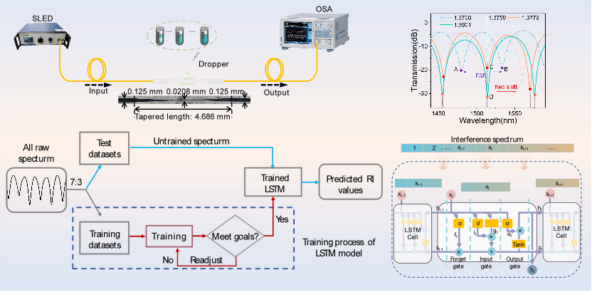 【新闻中心讯】燕山大学理学院李曙光课题组陈海良教授与清华大学杨四刚教授合作,基于开发的长短期记忆神经网络模型进行了光学干涉谱的全光谱识别,突破了高灵敏度与宽测量范围的不可兼得。相关研究成果以“LSTM-assisted Optical Fiber Interferometric Sensing: Breaking the Limitation of Free Spectral Range”为题,发表于光学顶刊《Light: Science & Applications》(IF~23.4)。 “基于长短期记忆神经网络的光学干涉传感...