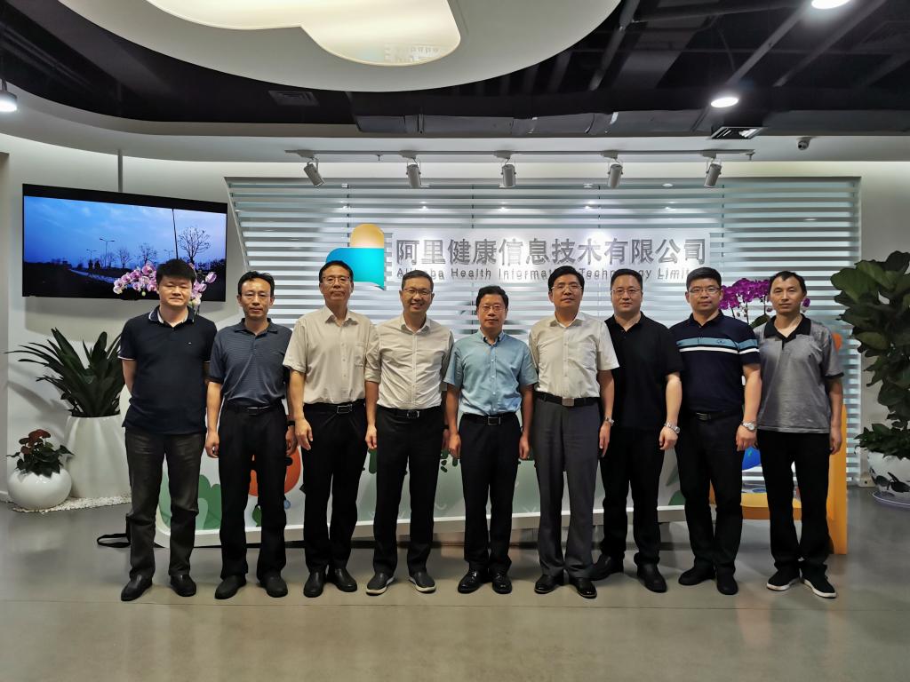 校领导一行在阿里健康信息技术有限公司,与朱顺炎等校友进行了亲切会谈。