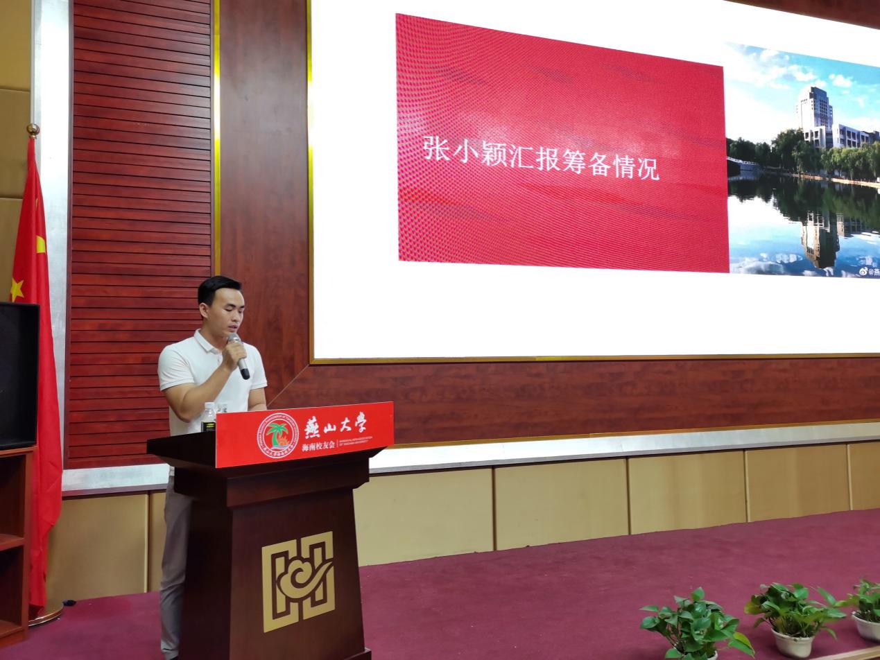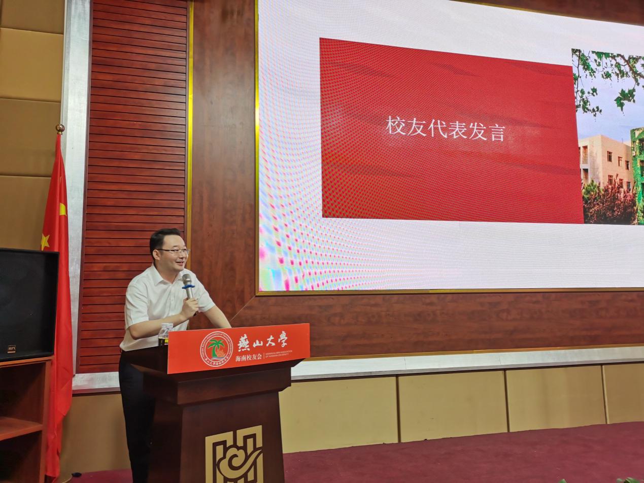 02级电子专业、海南返乡大学生志愿服务队创始人、新竹镇次滩观光旅游合作社理事长、海南校友会会长胡诗泽发言,表示海南校友会要维护好各地校友与母校的情感纽带,做好服务校友工作。