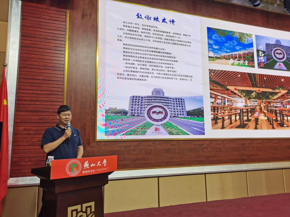 【新闻中心讯】相约天涯海角,畅想燕大未来。8月22日,成人论坛(东重)海南校友会成立大会在海口隆重召开,校党委书记赵险峰出席成立大会,与60余名海南校友济济一堂,共叙母校情,共商发展路。大会由海垦东新农场有限公司东和分公司副总经理、03级光信息科学与技术专业校友符雄主持。学校办公室主任王跃华,校庆办公室、校友办公室主任张向前随同参会。