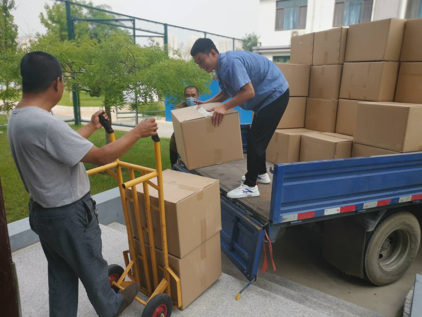 后勤工作人员卸车