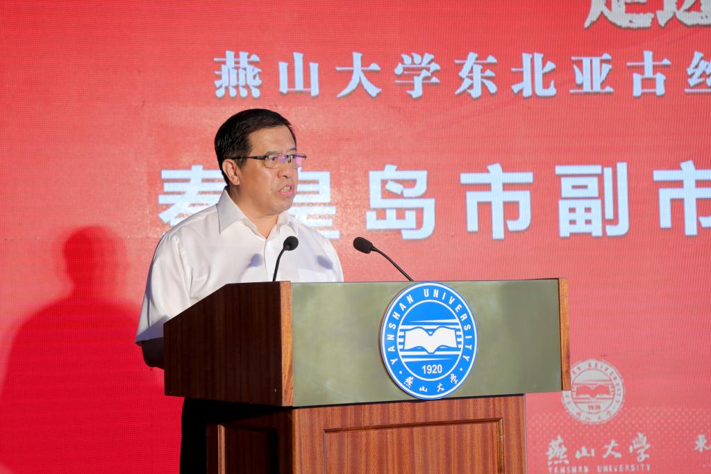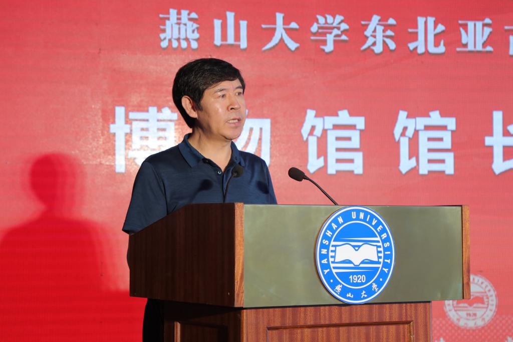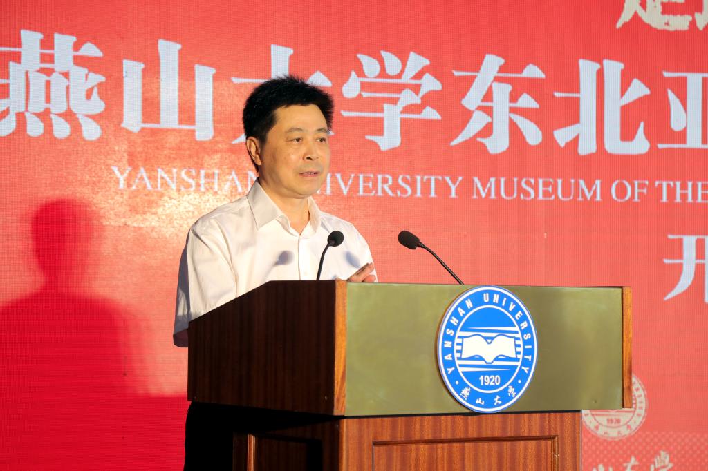 【新闻中心讯】8月25日上午,在喜迎“建校溯源百周年、独立办学一甲子”之际,成人论坛在东校区图书馆一楼大厅举行了东北亚古丝路文明博物馆开馆仪式。河北省文化和旅游厅党组成员、河北博物院分党组书记、院长罗向军,河北省文物局副局长韩立森,河北省文物局博物馆处处长李宝才,秦皇岛市副市长冯志永,秦皇岛市旅游和文化广电局党组书记李文生,秦皇岛市旅游和文化广电局三级调研员徐永新,著名明清史专家、国家清史编纂委员会委员李治亭,成人论坛党委书记赵险峰,党委副书记黄晟,副校长赵永生、王德松、陈国强、于树江等领导及相关职能部门、学院负责人,承建公司和校友代表等共同参加了开馆仪式。开馆仪式由王德松主持。