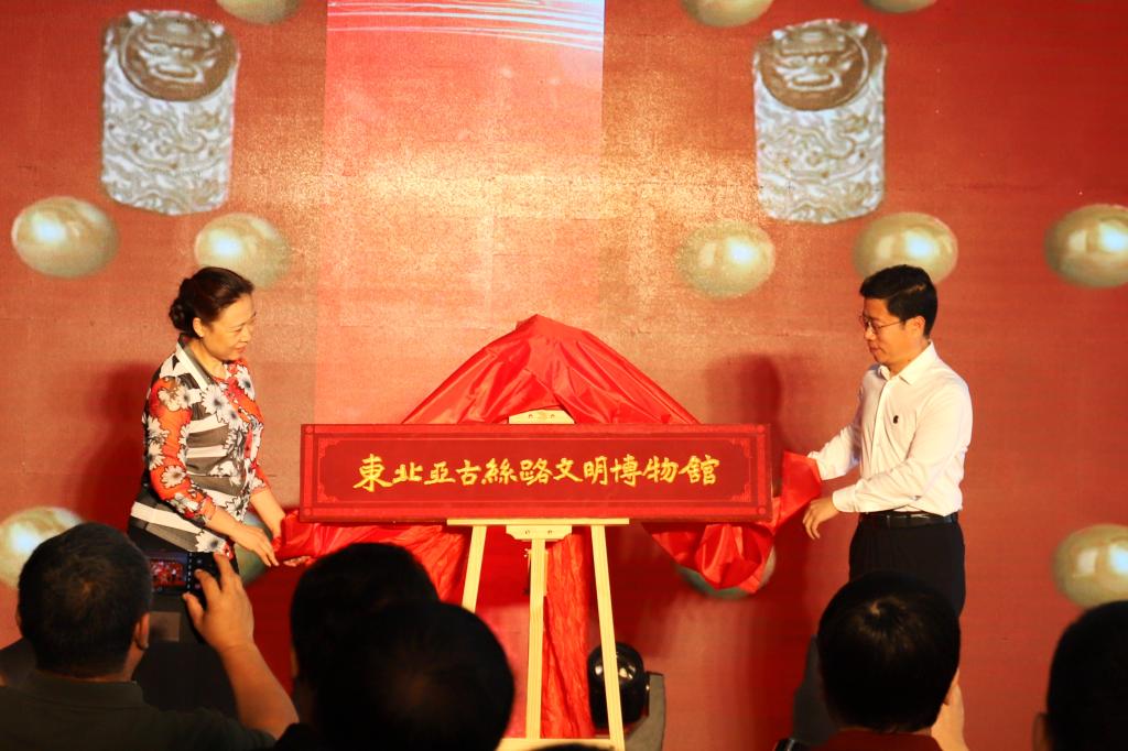 罗向军和赵险峰共同为成人论坛东北亚古丝路文明博物馆揭牌,并与其他与会嘉宾参观了博物馆和校史馆。