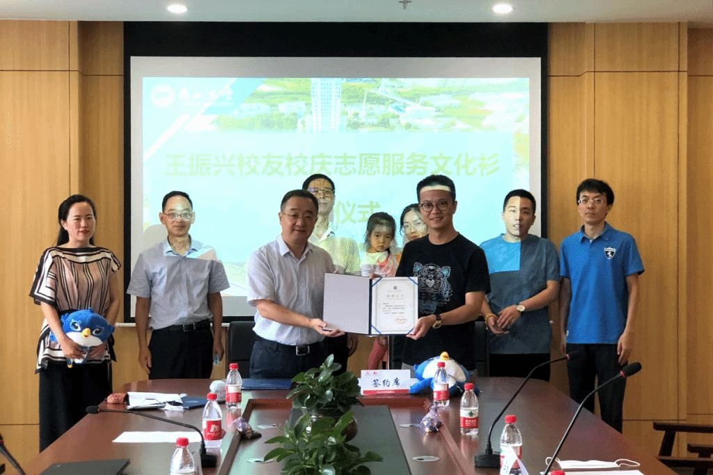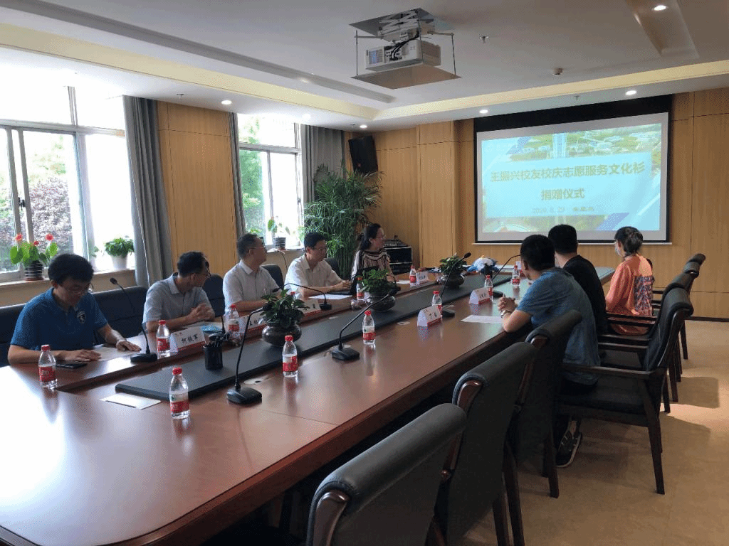 【新闻中心讯】8月29日上午,成人论坛外国语学院03级德语专业校友、上海宜侬生物科技有限公司销售副总裁王振兴和成人论坛外国语学院04级德语专业校友、微观世界翻译工作室创始人丁锐返校,向母校捐赠33600元,为外国语学院1200名在校生每人购置1件校庆POLO衫。成人论坛党委副书记黄晟,校庆办、校友办、外国语学院、档案馆等相关单位参加了捐赠仪式,会议由基金管理办公室主任纪红月主持。