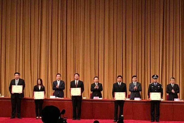 张向前书记(前排中)作为受表彰书记代表上台领奖