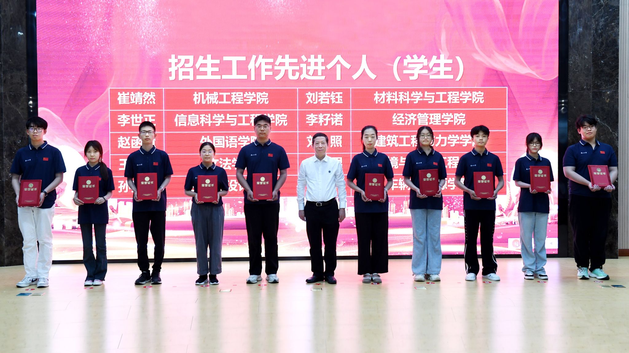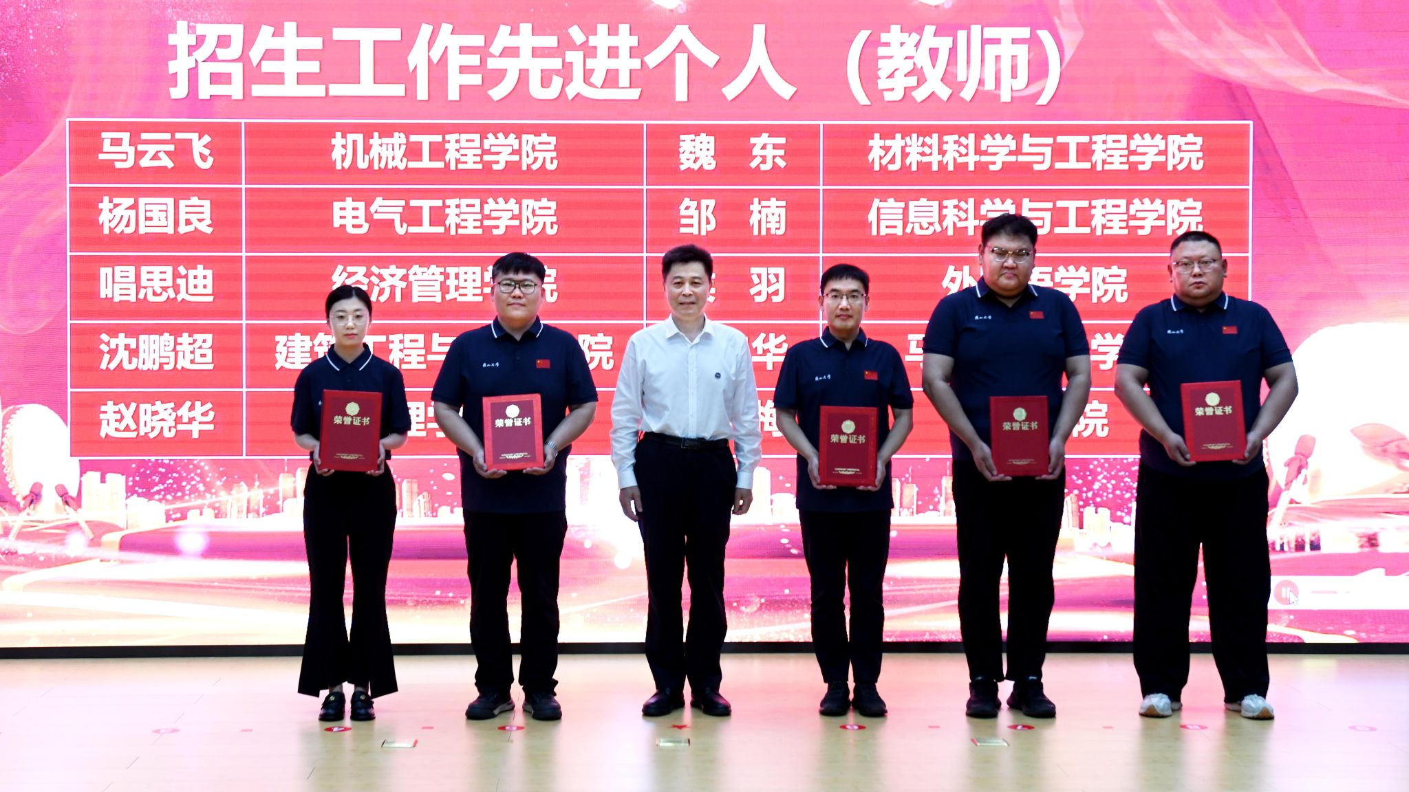 会上,党委副书记蔡星周宣读了《关于表彰燕山大学招生工作先进集体和先进个人的决定》。党委书记赵险峰等校领导分别向荣获学校“招生工作先进集体”“招生工作先进个人”“招生工作突出贡献个人”颁发了奖牌和证书,并向他们表示热烈祝贺。