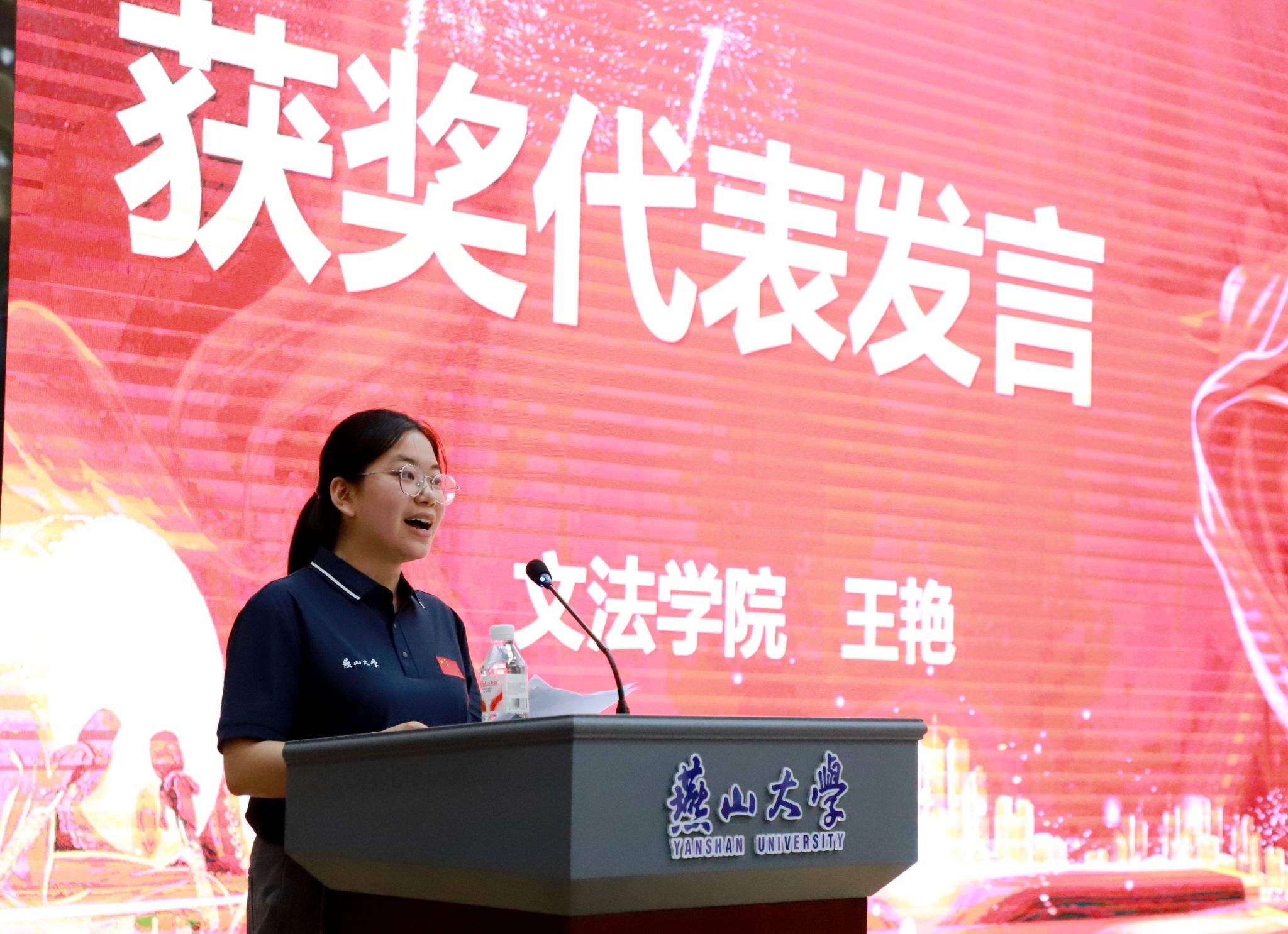 招生工作先进集体代表、建筑工程与力学学院郝圣旺,招生工作先进个人教师代表、经济管理学院唱思迪,招生工作先进个人学生代表、文法学院王艳,招生工作突出贡献个人代表、唐山校友会郑立波作了典型发言。