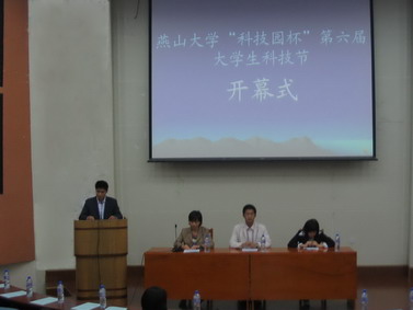 开幕式随着激昂的团歌的奏响正式开始;首先,校科协秘书长白志华同学宣读了倡议书,倡议同学们响应党和国家的号召,增强自主创新能力,为我校的科技文化事业的发展而努力;然后,校科协主席刘旭同学发言,使与会人员对本次活动有了一个为更具体的了解;接着,各院科协主席或者负责人汇报了本院在科技节期间的活动内容,届时,各学院将会以多样的形式展示自己各具特色的科技成果,最后,校团委副书记孙红磊为此届科技节致贺词并宣布开幕。他首先阐述了“创新、创业、创造”的“三创”理念,对我校学生乘势而上、造势而为,贯彻落实科学发展观寄予了厚望,并预祝此届科技节活动取得圆满成功,最后宣布我校“科技园杯”第六届大学生科技节正式开幕。