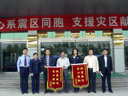 【新闻中心讯】“爱心捐助、抗震救灾”!2008年5月20日上午,秦皇岛经济技术开发区工商局领导专程来到成人论坛国家大学科技园,送上锦旗,感谢我校国家大学科技园和园区企业在这次抗震救灾捐款活动中对灾区同胞的真切关心和大力帮助。(编辑 艾冬梅)