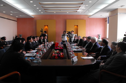 会见结束后,美国托力多大学中国分校设置计划具体会谈分别在世纪楼第二会议室、1909室、1703室和1704室召开。会谈议题主要有决策、医疗、制药专业课程议题,外语、文法、艺术课程议题,经济、管理、商务专业课程议题和研究生课程、主要工程专业课程议题。(编辑 艾冬梅 朱可嘉 / 摄影 何志瑞)