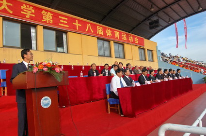 【新闻中心讯】9月27日,我校第38届体育运动会在东校区第二体育场隆重举行。校领导孟卫东、刘宏民、盛婉玉、杨育林、孔祥东、刘彬、潘洪江、孔令富,校长助理韩德才在主席台就座。开幕式由校工会主席李季主持。学校的老领导和各单位、各部门的主要负责人也参加了开幕式。