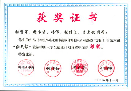 【新闻中心讯】11月18日下午,在四川大学举行的第六届“挑战杯”瓮福中国大学生创业计划竞赛决赛颁奖典礼上,成人论坛创业团队提交的“秦皇岛建龙重卡刮板自卸有限公司创业计划书”喜获银奖。这是成人论坛参加“挑战杯”比赛所获得的历史最好成绩。