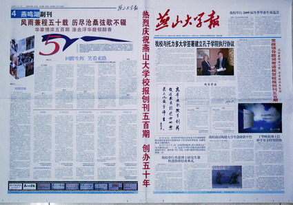 我校校报也以组织专版的形式,邀请分布在海内外各条战线的毕业生记者为校报撰写纪念文章、征集学生记者祝福语,举办小规模纪念活动,庆祝校报创刊五百期、五十年。