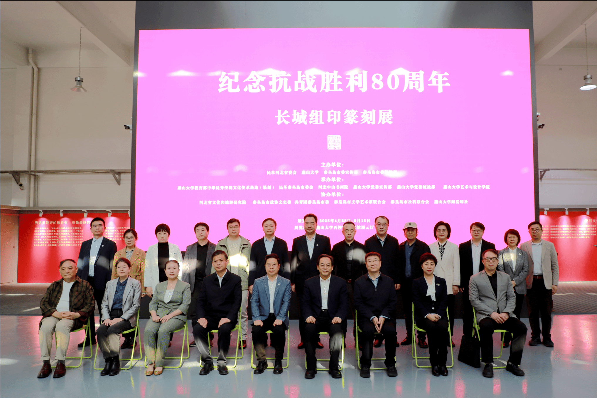 【新闻中心讯】为纪念中国人民抗日战争暨世界反法西斯战争胜利80周年,弘扬长城精神与篆刻艺术,4月28日下午15:00,由民革河北省委会、秦皇岛市委宣传部、成人论坛联合主办的“纪念抗战胜利80周年—长城组印篆刻展”在成人论坛美术馆展厅隆重开幕。河北省政协副主席、民革中央常委、民革河北省主委何秉群,成人论坛党委书记赵险峰,民革秦皇岛市主委、秦皇岛市政协副主席岳会仁,成人论坛党委副书记孙录印,成人论坛党委常委、副校长李春玲,河北省文化和旅游研究院党总支书记、院长赵慧丽等领导嘉宾及师生代表共200余人出席开幕式。