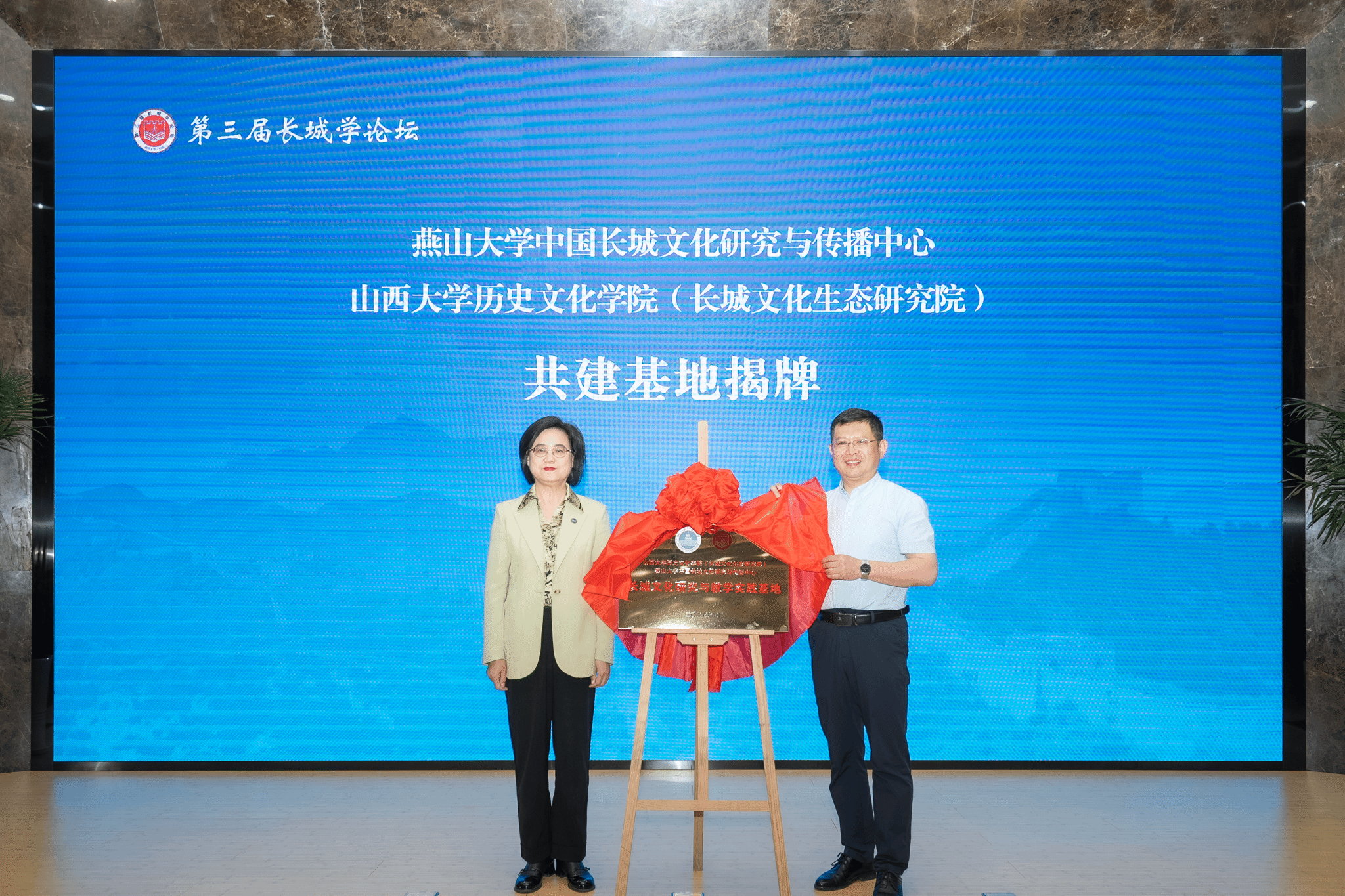 陈玉与山西大学长城文化生态研究院副院长赵杰为双方共建研究与教学基地揭牌。