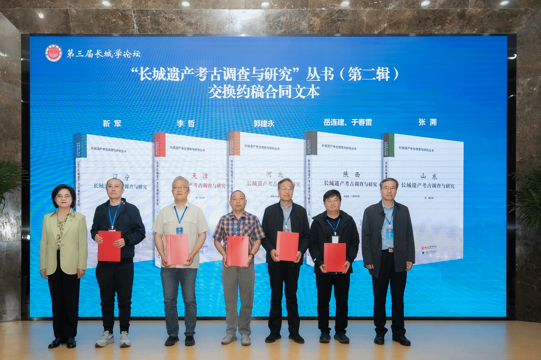 兰州大学出版社社长雷鸿昌和陈玉与国家出版基金资助项目“长城遗产考古调查与研究”丛书第一辑的5位作者代表交接出版合同文本,与丛书第二辑的5位作者代表交接约稿合同文本。