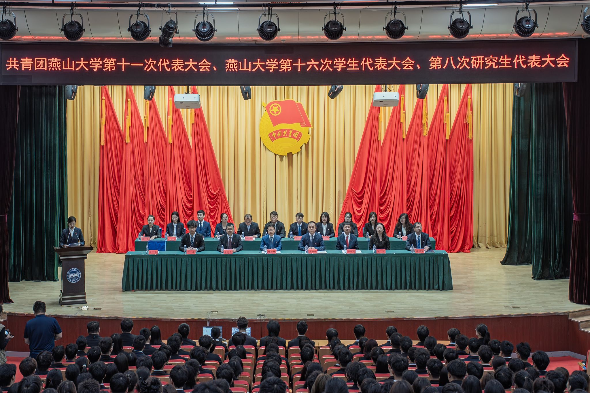 【新闻中心讯】5月17日,共青团燕山大学第十一次代表大会、燕山大学第十六次学生代表大会、燕山大学第八次研究生代表大会在西校区大学生活动中心报告厅隆重召开,来自全校各单位的491名代表肩负使命、齐聚一堂,共商学校共青团工作发展大计。共青团河北省委副书记吴湘锋、共青团秦皇岛市委书记邱中凯、河北省学联驻会执行主席何璐,校党委书记赵险峰、党委副书记蔡星周,驻秦高校团委负责人、学校党群部门负责人出席开幕式。开幕式由校团委书记段磊主持。