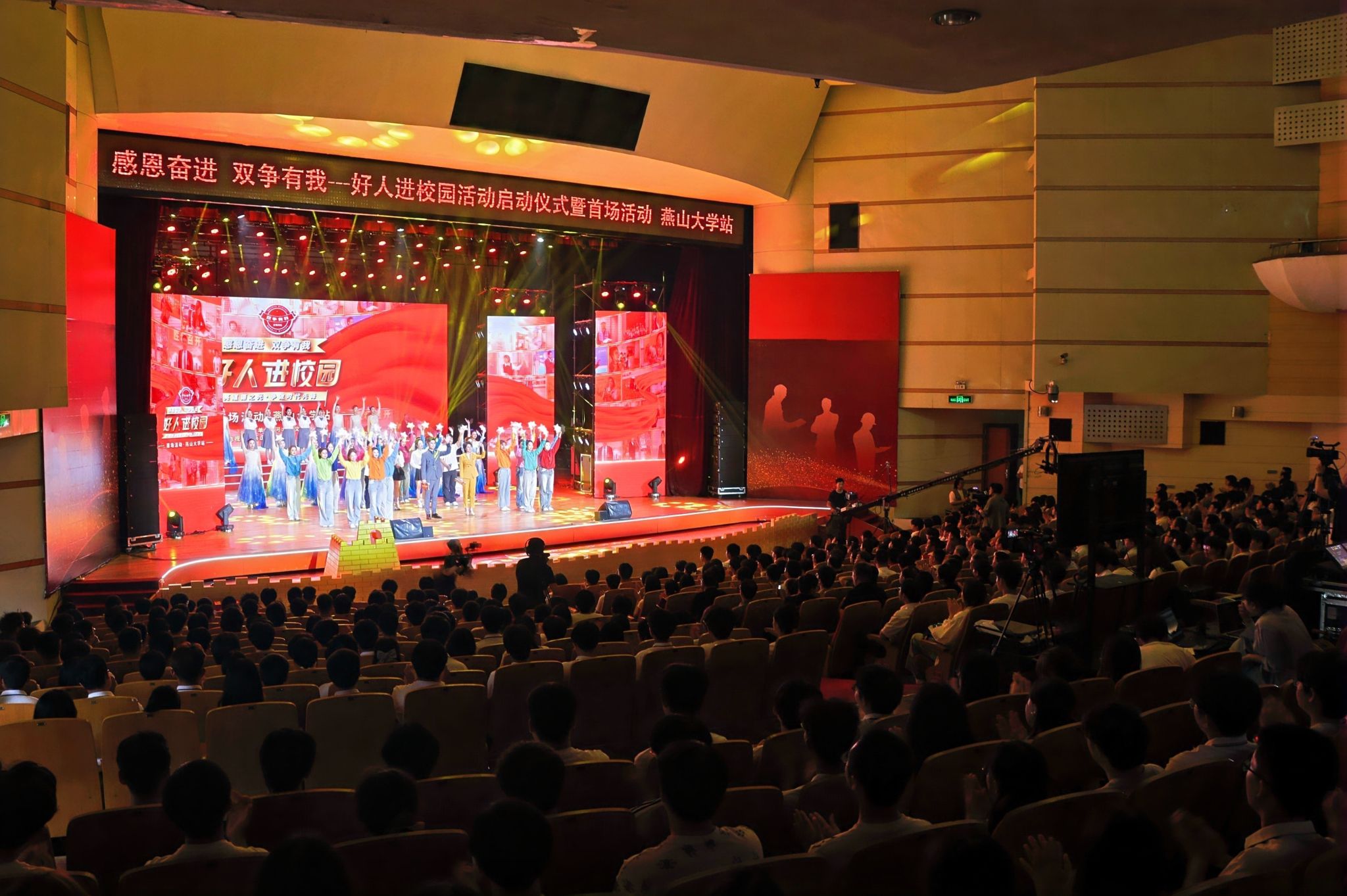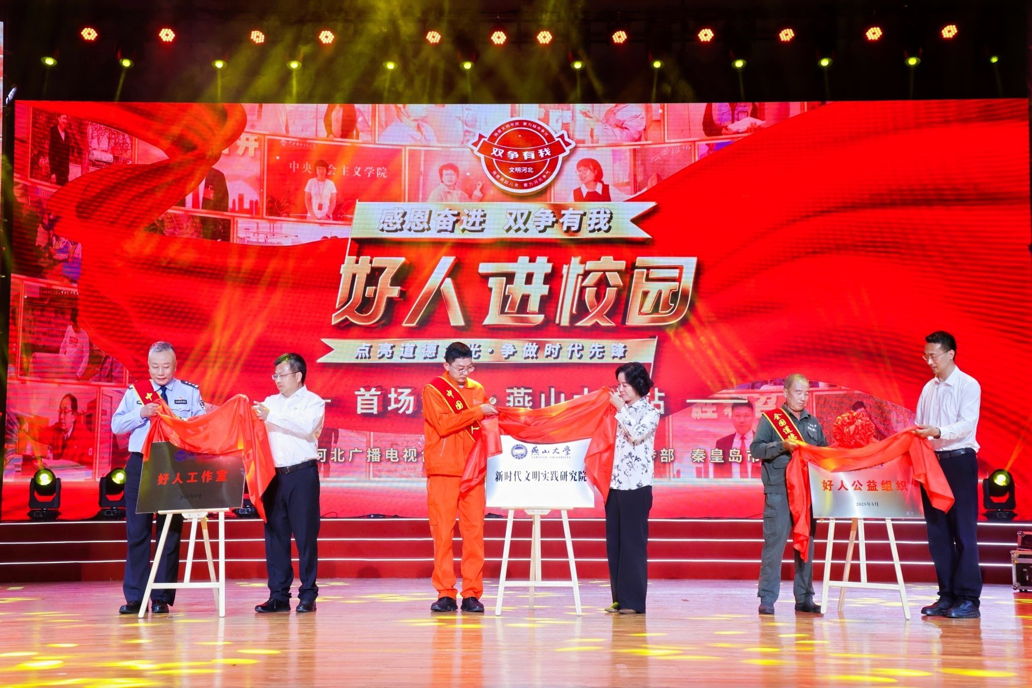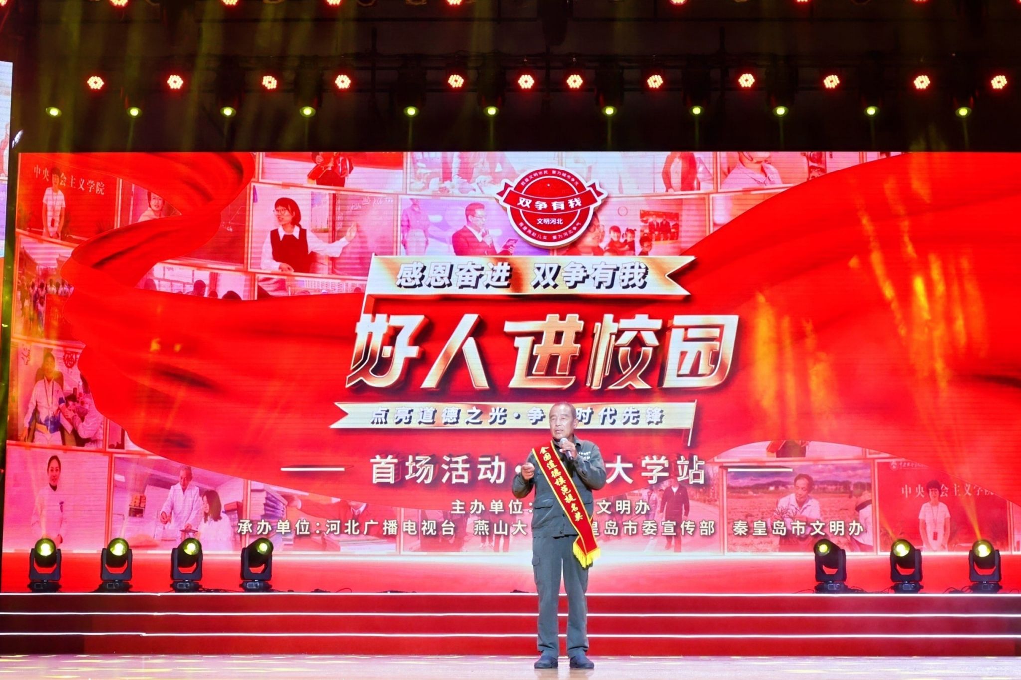 【新闻中心讯】为深入贯彻习近平总书记关于精神文明建设工作的重要指示精神,全面落实全国和全省教育大会部署,以榜样力量引领青年成长成才,6月5日下午,“感恩奋进 双争有我”好人进校园活动启动仪式暨首场活动在成人论坛举办。中国精神文明网副总编辑周黎明,河北省委宣传部部务会成员、文明办专职副主任肖振军,河北省教育厅二级巡视员王运锋,河北广播电视台副总经理罗大成,秦皇岛市委常委、宣传部部长刘丽香,副市长李国强,成人论坛党委书记赵险峰,党委副书记蔡星周,党委常委、副校长汪殿龙,以及教育部驻青龙县工作组,各地市县区文明办负责人,河北大学等兄弟院校代表,全国文明校园单位代表,“中国好人”、“河北好人”、道德模范代表,学校师生代表等千余人参加了活动。