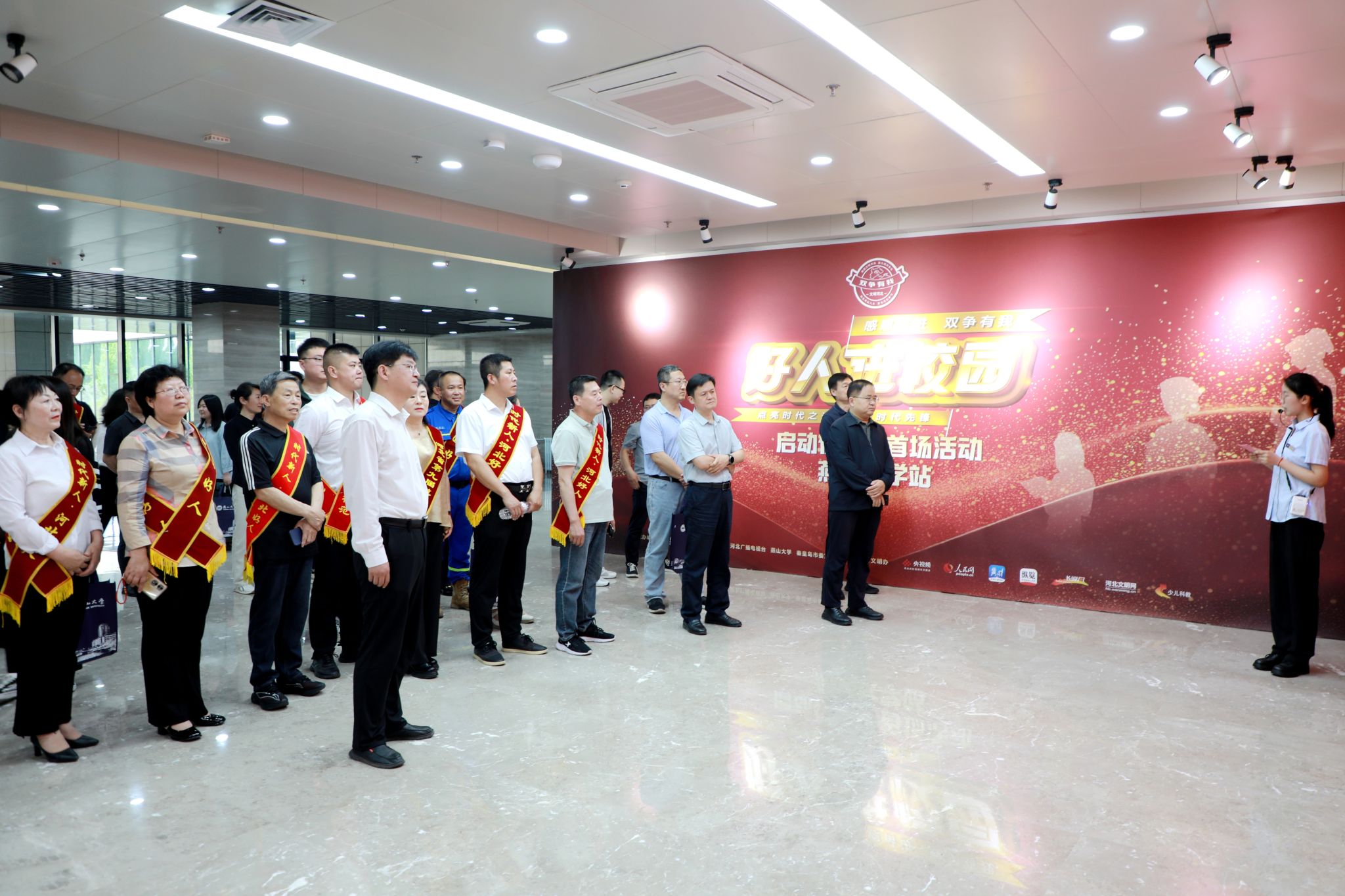 周黎明、肖振军、刘丽香、赵险峰、王运锋、罗大成共同启动活动,粒粒金沙如同好人的善行点滴,汇聚成时代的光芒。