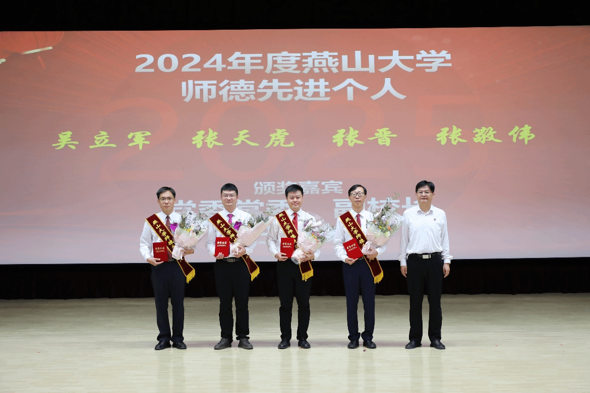 赵险峰在致辞中,以“以教育家精神铸魂强师,谱写教育强国建设华章”为主题,结合学校建校溯源105周年、独立办学65周年、扎根河北40周年及抗战胜利80周年的特殊历史节点,回顾了燕大“工业报国”到“科技强国”的校史传承与“艰苦奋斗、严谨治学、求实创新”的精神积淀,总结了全体教职工在学科建设、科研创新、人才培养中的贡献,肯定了师德先优集体与个人。他强调,教育是“精神传承、使命接力”,新征程上,全体教职工要以教育家精神铸魂,以创新驱动为翼,以仁爱之心立本,大力弘扬伟大抗战精神、积极践行教育家精神,共同谱写教育强国建设的燕大篇章。讲话最后,他代表学校向全体教职工致以节日祝贺和诚挚问候。