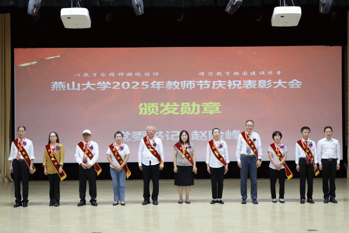 大会在《燕大校歌》合唱中落下帷幕。会后,校领导与荣休教职工代表、受表彰个人和集体代表进行了合影。