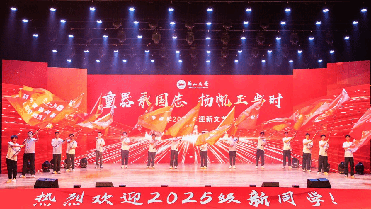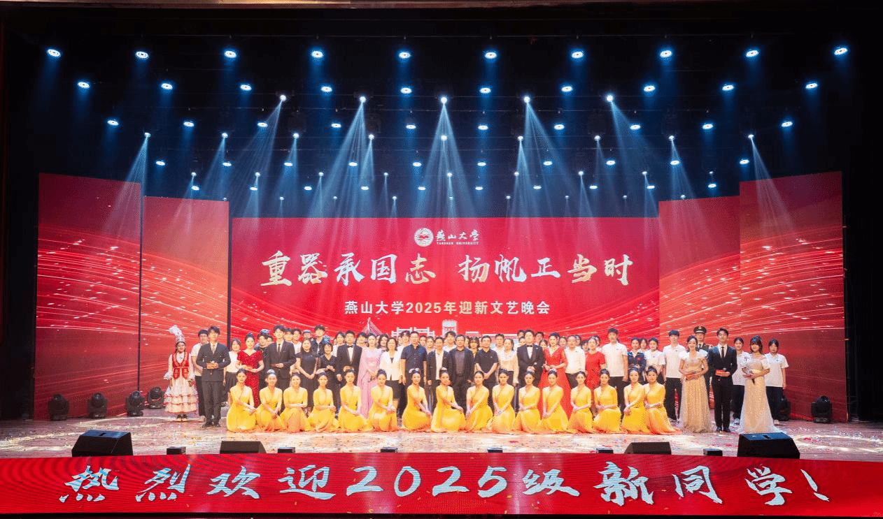 【新闻中心讯】渤海潮涌迎帆渡,燕园秋浓候君来。9月19日19:00,燕山大学“重器承国志 扬帆正当时”2025年迎新文艺晚会在东校区大学生活动中心举行。校党委书记赵险峰,党委副书记蔡星周,党委常委、副校长华长春、李春玲,党委常委、纪委书记李春晖出席晚会,各职能部门和学院主要负责同志、教师和2025级新生代表现场观看演出,14.5万名师生、家长、校友通过燕山大学官方微博直播观看了演出。