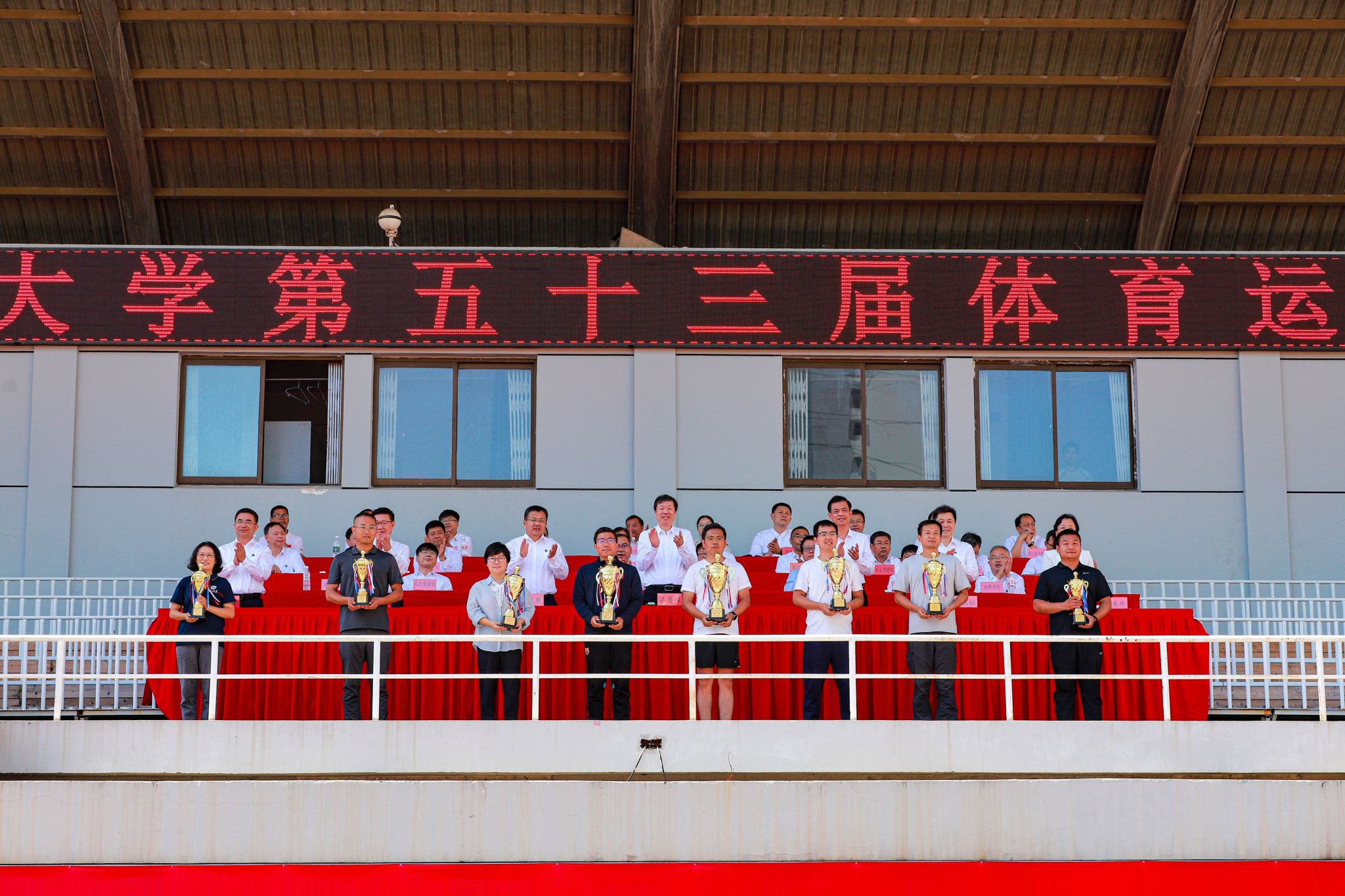 9月29日上午举行的运动会闭幕式由校工会主席韩增锟主持。运动会总裁判长杨广辉宣布了比赛成绩:体育学院、机械工程学院、经济管理学院、电气工程学院、信息科学与工程学院、文法学院、环境与化学工程学院、艺术与设计学院获学生组团体总分前八名;电气工程学院、机关、机械工程学院、环境与化学工程学院、车辆与能源学院、工程训练中心、理学院、建筑工程与力学学院获教职工组团体总分前八名。道德风尚奖评比组组长郭沛宣布了道德风尚奖评比结果:机械工程学院、电气工程学院、信息科学与工程学院、经济管理学院、文法学院、环境与化学工程学院、艺术与设计学院获得学生组道德风尚奖,机关、机械工程学院、信息科学与工程学院、外国语学院、文法学院、继续教育学院、后勤服务中心获得教工组道德风尚奖。校领导为获奖单位颁发了奖杯和奖牌。