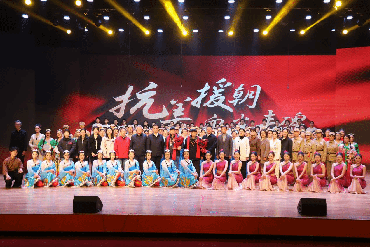 整场演出以抗美援朝历史为主线,分为六个篇章,艺术化再现了那段峥嵘岁月。序幕“黎明曙光”以民族舞蹈生动呈现新中国成立初期各族人民欢庆团结的动人画面。“保家卫国”篇章通过情景演绎,真实展现志愿军行军的艰苦环境与云山夜战的英勇瞬间。“冰火忠魂”篇章聚焦长津湖战役中“冰雕连”的坚守壮举,彰显深沉的家国情怀。“山河同庆”篇章演绎了中朝人民共庆胜利的温情场景。“薪火永传”篇章通过老兵与青年学生的跨时空对话,搭建起精神传承的桥梁。