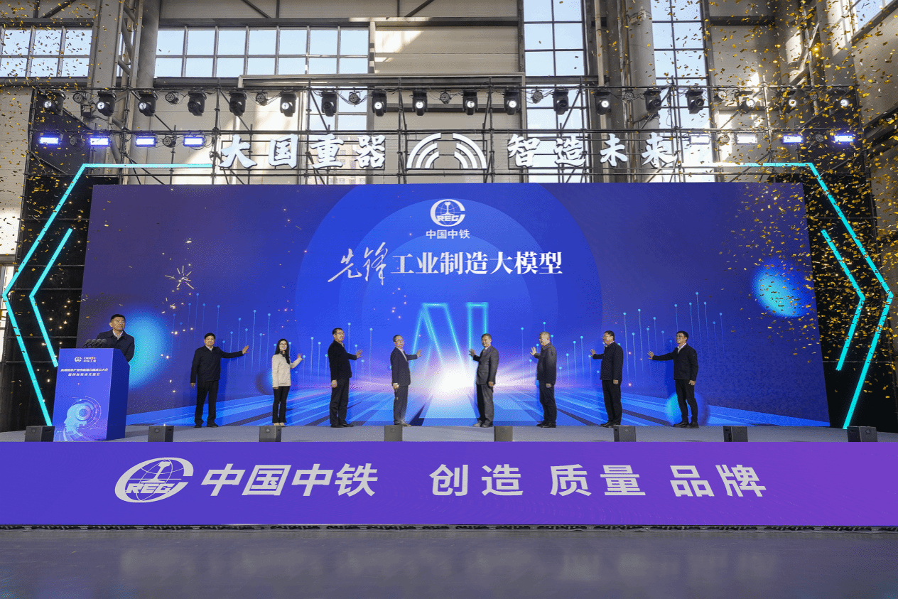 随后,赵丁选受邀共同参加“先锋·工业制造大模型”发布仪式。该模型是中铁工业为响应国家数字化、智能化战略,推动行业向高端化转型而打造的核心平台。