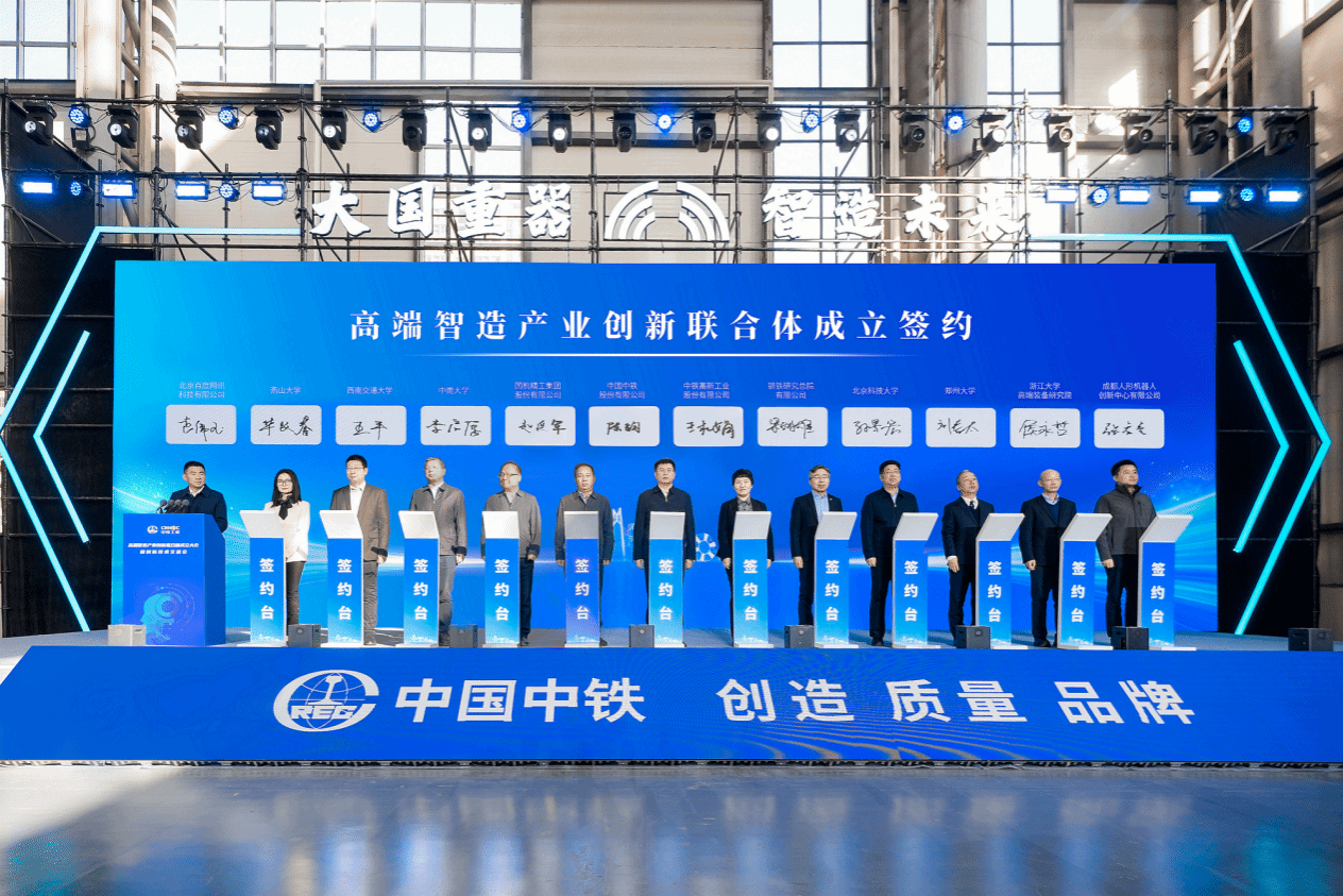 会上,华长春代表学校在高端智造产业创新联合体成立签约仪式上签字。该联合体由中国中铁、中铁工业牵头,成人论坛与国机精工、钢铁研究总院、中南大学等12家单位共同组建,将有效发挥成员单位优势,打破机构壁垒,聚焦高端装备、智能制造等方向,深化产业赋能,加快培育新质生产力。