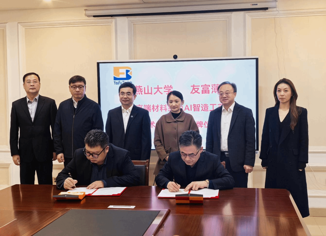 【新闻中心讯】12月2日,学校党委常委、纪委书记李春晖率队赴江苏省宿迁市江苏友富薄板公司,出席校企共建“高端材料绿色AI智造工艺技术创新中心”(以下简称“创新中心”)的签约揭牌活动。沭阳经开区管委会副主任魏婷、多弗国际控股集团副总裁李振宇、江苏友富薄板公司总经理袁志升等政企代表一同出席仪式。