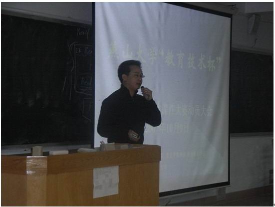 窦老师对参赛人数及学院分布情况进行了简要的介绍,并对承办此次大赛的2005级教育技术学全体同学表示感谢。她鼓励全体参赛同学们要坚定创作决心,坚持到底,争取在比赛截稿期前提交一份优秀作品,并希望同学在这样一个创作过程中提高学习能力、动手能力和协调合作能力,最后再次强调了参赛作品的原创性。