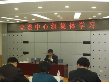 【新闻中心讯】10月26日上午10:00,校党委中心组成员和校党委机关各部门领导齐聚世纪楼18层学术报告厅,集体学习胡锦涛总书记十七大报告。学习由宣传部部长白靖主持,主讲人为文法学院政治学专业石敦国副教授。