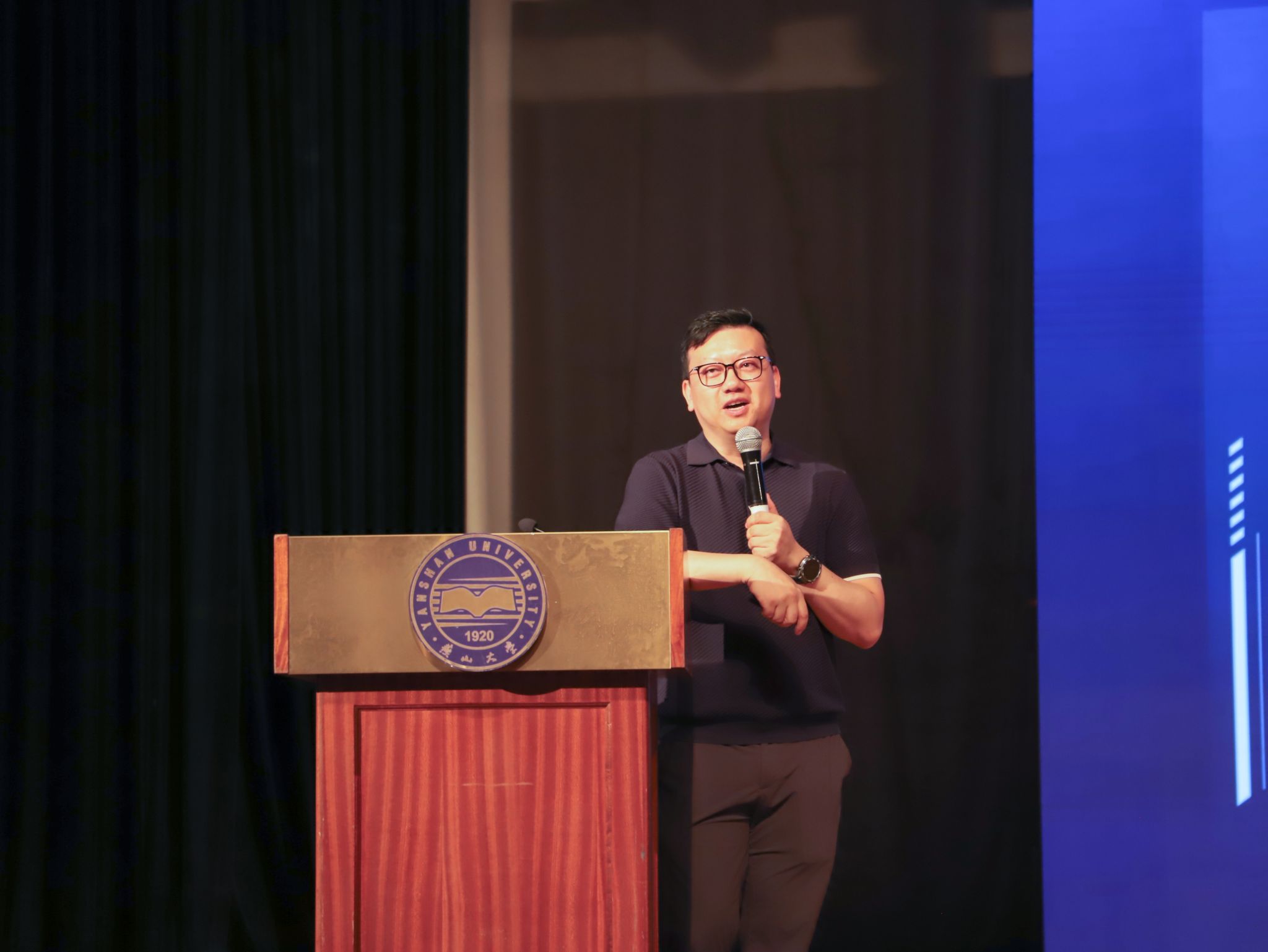 金摇光作了题为《年轻人点亮科技树——人工智能下的创新涌现》的主题报告。在报告中,金老师紧扣人工智能领域的前沿动态与创新实践,以兼具前瞻性的科技视野、具象化的案例呈现进行了深入浅出地解读,系统梳理了AI技术赋能下创新涌现的关键现象与内在逻辑。他以宇树科技四足机器人、伯牙智能作曲平台、泽雅青创空间等项目为例,展现了当代青年如何依托赛事实践积累经验、推进技术落地破解难题、通过模式创新打通链路,最终实现从创意萌发到创业落地的有效跨越,为中国人工智能应用生态注入鲜活的青年力量。他鼓励燕大学子勇立潮头,主动拥抱技术变革,坚定创新自信,在实践中锤炼过硬本领,在奋斗中践行青春价值,为推进中国式现代化建设贡献青春力量。整场报告内容翔实、视野开阔,拓宽了学生对AI创新生态的认知维度,坚定了燕大学子在AI时代主动把握机遇、勇担创新使命的信念与决心。全校1000余名学生参与本次活动。