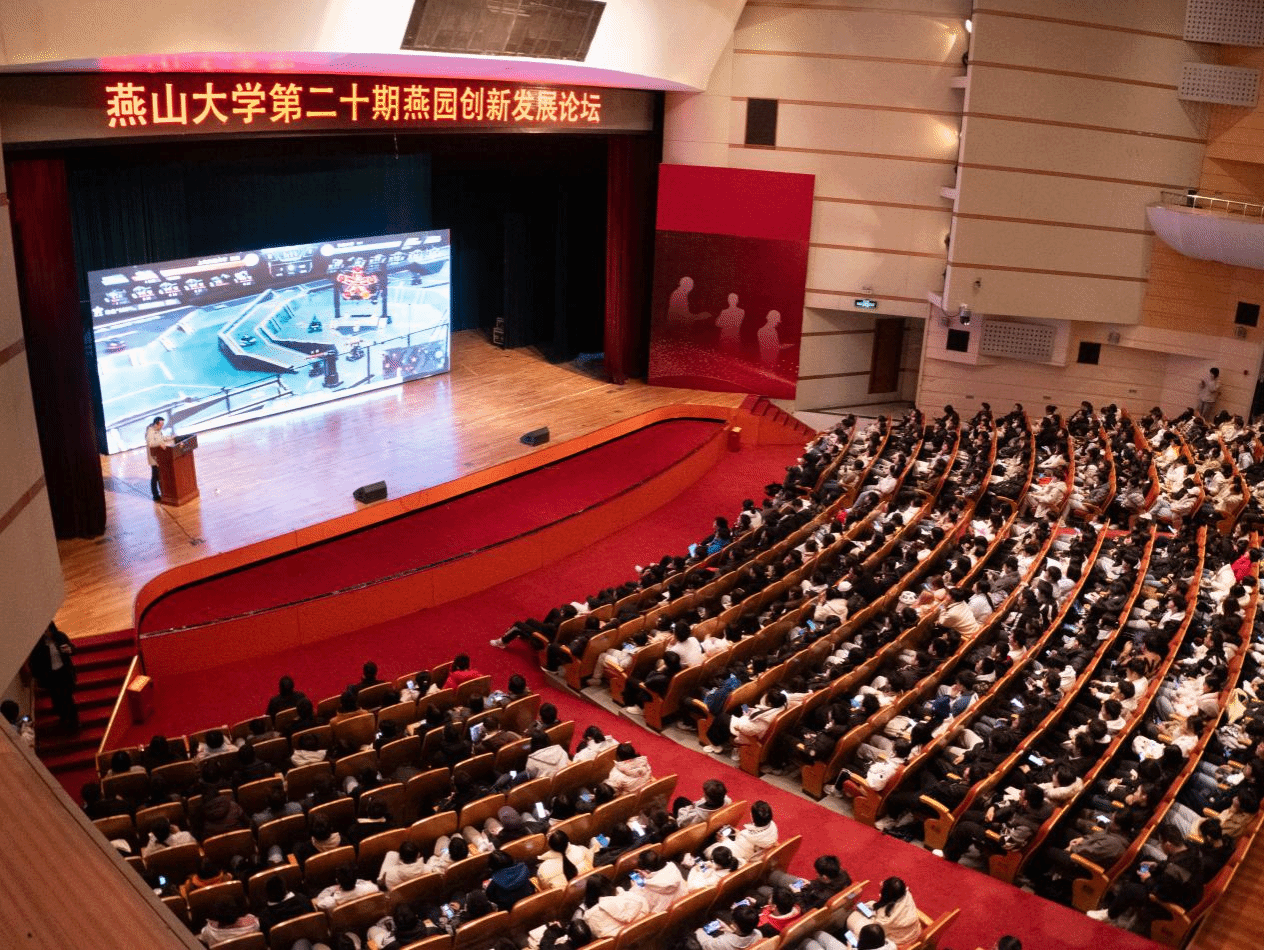 随后,宋续明作题为《双创育人新范式暨国家级大学生创新创业标杆赛事解析与备赛建议》的主题报告。他从赛事定位、赛制规则、赛道分布等维度,系统解析国家级大学生创新创业竞赛体系,重点聚焦中国国际大学生创新大赛等综合类标杆赛事,深入解读作品遴选要点、评审核心导向等关键信息。同时,他围绕大赛选题方向锚定、申报书逻辑构建、PPT设计、路演答辩等环节,为同学们提供了极具操作性的备赛指导。他鼓励燕大学子立足国家战略需求、结合学科优势投身双创实践,将个人成长与国家发展同频共振。整场报告点燃了学生的创新热情,为大家参与国家级双创标杆赛事厘清了思路、明确了路径。全校1200余名学生参与本次活动。
