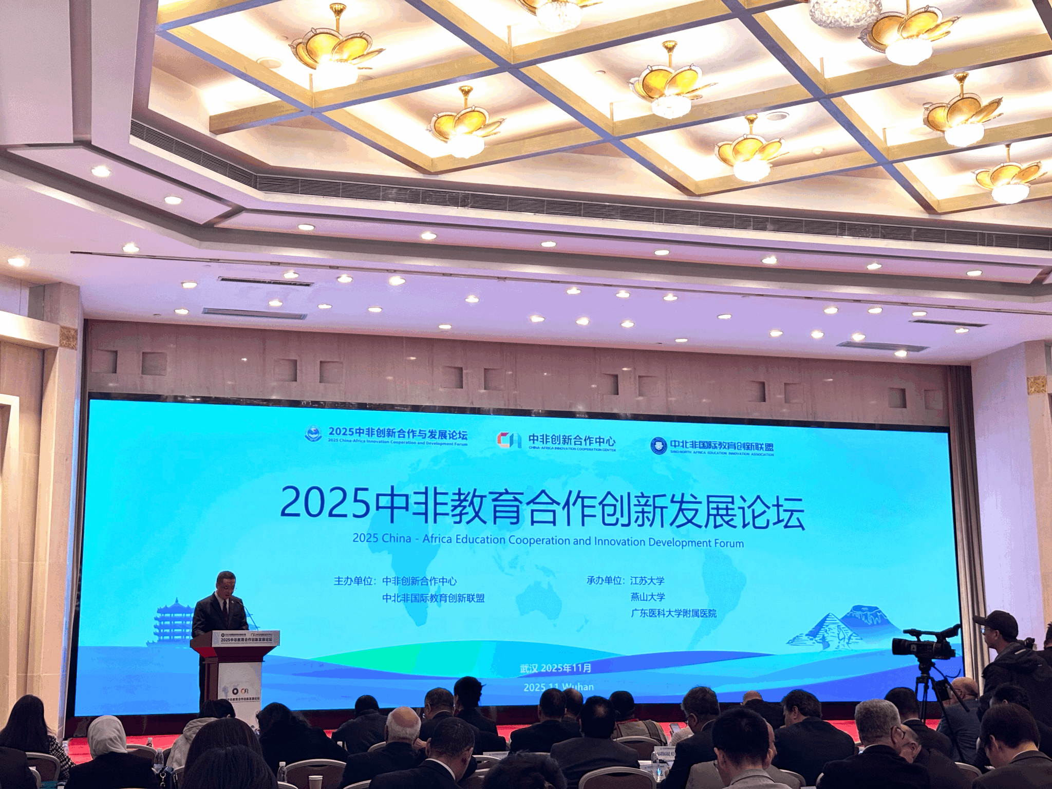 【新闻中心讯】11月21日,由科学技术部与湖北省人民政府共同指导,中非创新合作中心与中北非国际教育创新联盟主办,成人论坛与江苏大学等单位联合承办的“2025中非教育合作创新发展论坛——高等教育分论坛”在武汉东湖国际会议中心成功举办。本次论坛以“数智时代中非高等教育人才培养与科研合作”为主题,汇聚了来自中国与非洲多国教育主管部门、高校、国际组织及企业界的近200名代表,共商中非高等教育合作发展大计。