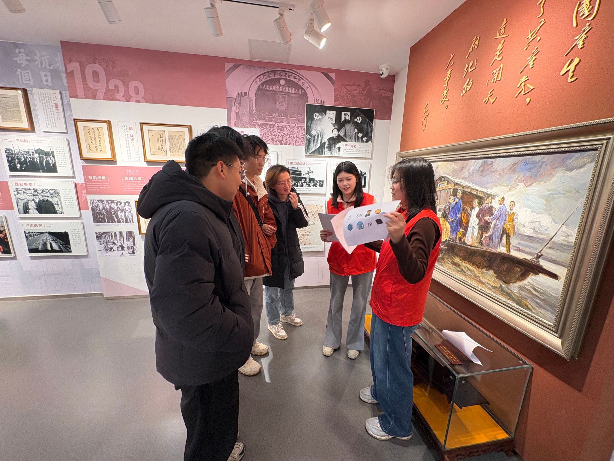在党员组织生活馆的红色展厅中,一幅幅承载着历史印记的珍贵图文将那段爱国青年为民族危亡奔走呐喊的过往清晰铺展。学生讲习员以生动的讲述,拆解这场爱国运动的历史背景、核心脉络与时代意义,让每一位青年学生在观展体验中,触摸历史脉搏、体悟责任担当。