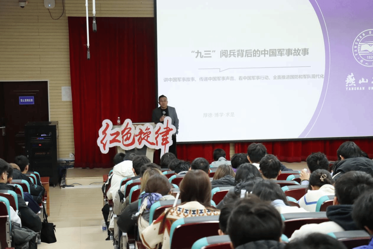 【新闻中心讯】11月27日晚7:00,由马克思主义学院主办,马克思主义学院研究生会承办的第二百零一期“红色旋律”讲坛在我校东区第四教学楼109举行。马克思主义学院郭祥俊老师主讲了《“九三”阅兵背后的中国军事故事》。