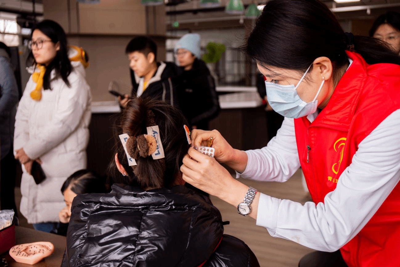 本次义诊活动在组织过程中实施了多项特色举措。活动融入了丰富的中医体验项目,海港医院医疗团队精心准备了耳穴贴压服务,医护人员根据师生身体状况精准取穴,有助于缓解疲劳、改善睡眠等问题。学校和医院同时还提供了养生茶饮,现场为师生冲泡饮用,传递传统养生理念。每一个诊疗科室,学校和医院都建立了有专科医生和志愿者加入的微信群,师生在问诊时间之外,仍可随时在专科医疗群里进行咨询。学校还在三楼专门设立了候诊室,可在等待时间内观看医疗健康宣传片等视频。这些贴心举措受到师生的广泛好评,认为义诊活动不仅有专业诊疗,同时充满人文关怀。