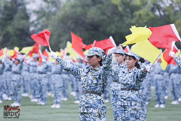 彩旗舞起来,正如我们即将开始的大学生活,一半明艳,一半热烈(张羽)
