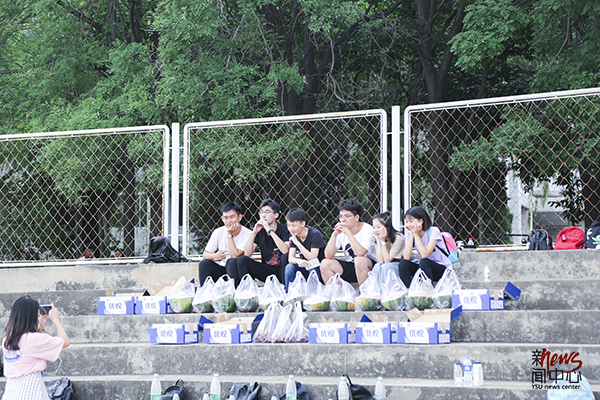 拍张照留念,终于轮到我们给学弟学妹送西瓜了(郭柏彤)