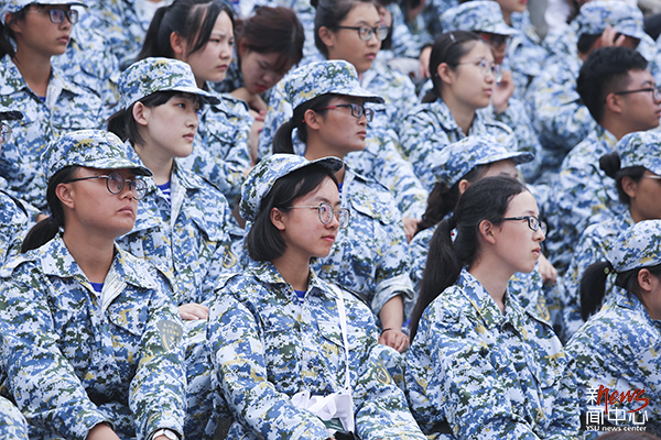 当观众也要认真而整齐,把军训精神坚持到最后(张羽)