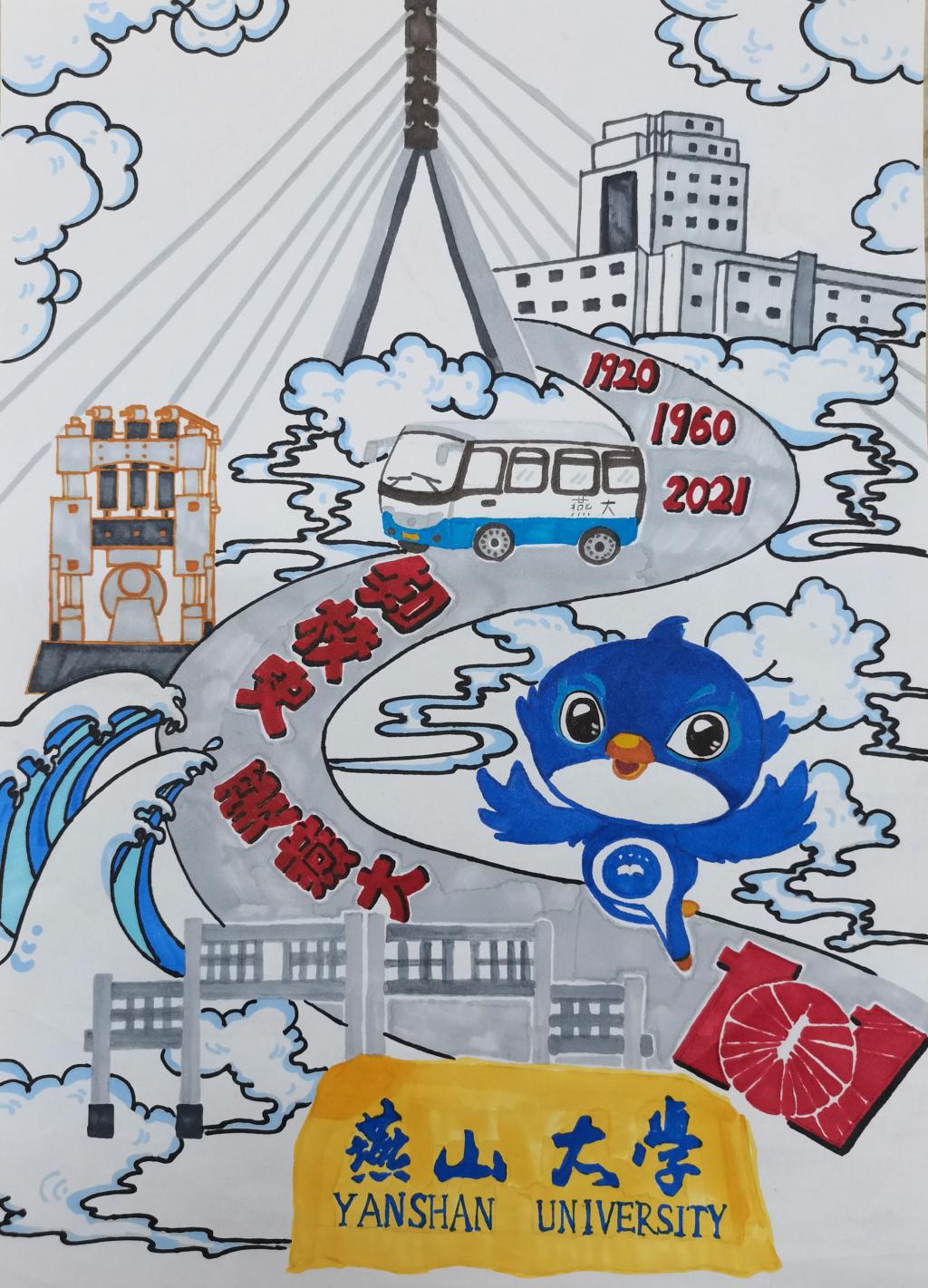 二等奖:张鑫鑫《百年征程路,笔墨燕大情》