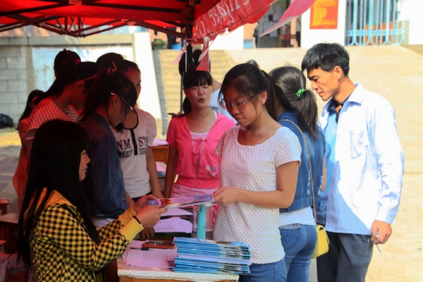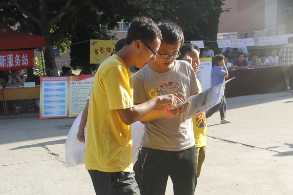 热心的老生为新生介绍学校情况