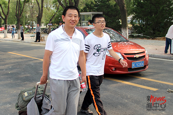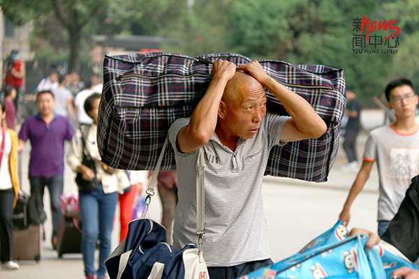 热心的学长帮我推着行李箱。 (薛占伟 摄)