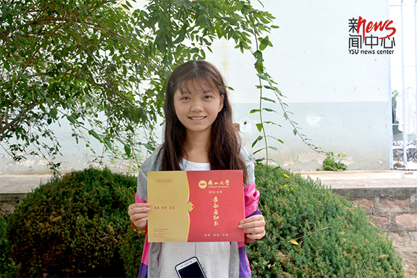以下是合照时间。拿着我金灿灿的通知书卖个萌。(单廷美 摄)