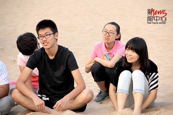 在海边和来自各个城市的同学相聚。(王松涛 摄)