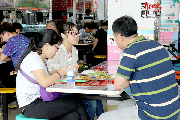和爸妈一起品尝一下大学餐厅的美食。(邓可星 摄)