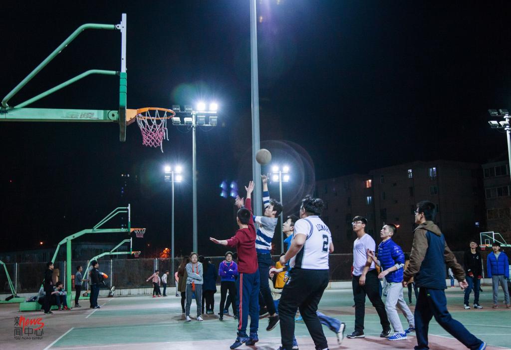 晚上的篮球比赛也异常激烈 (付心怡 摄)