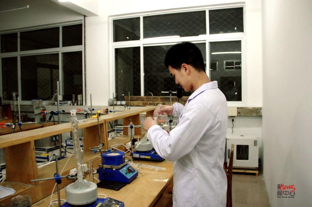 夜间实验需要更加严谨的态度 (罗佳林 摄)